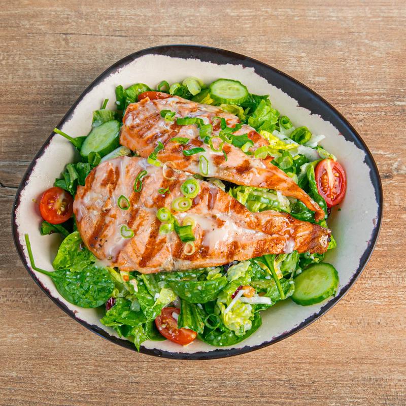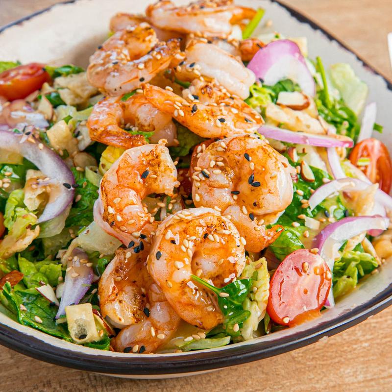 Mixed greens, cherry tomatoes, green onions, red onions, cilantro, toasted almonds, wonton strips, sesame seeds, and sesame vinaigrette.