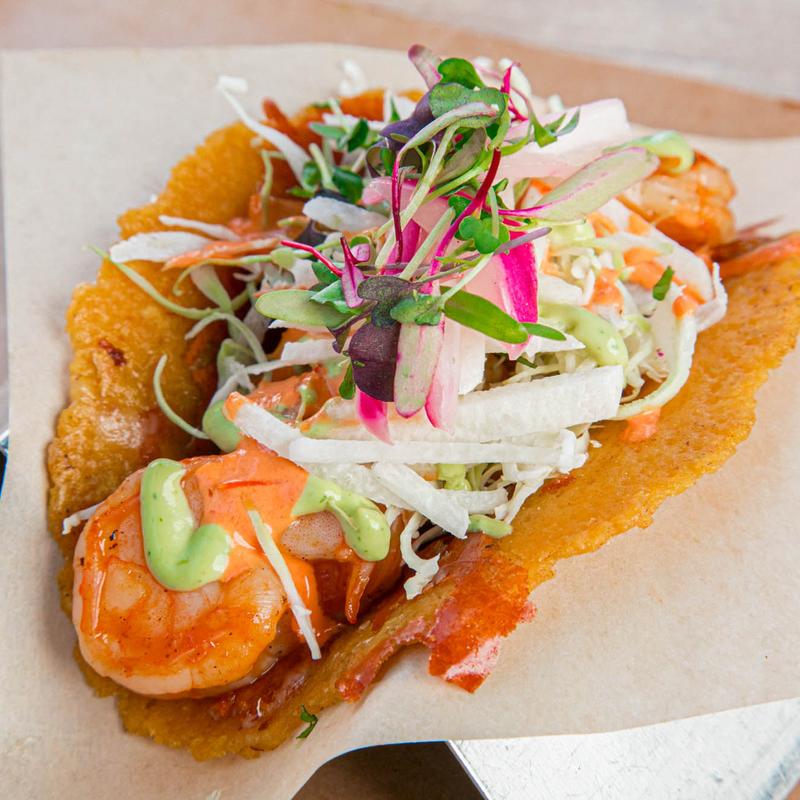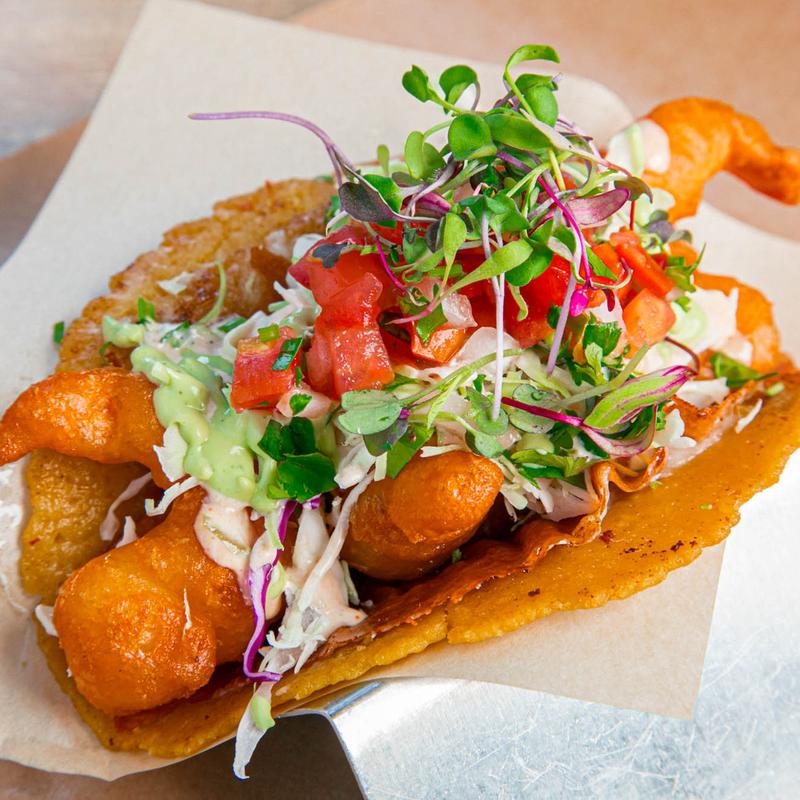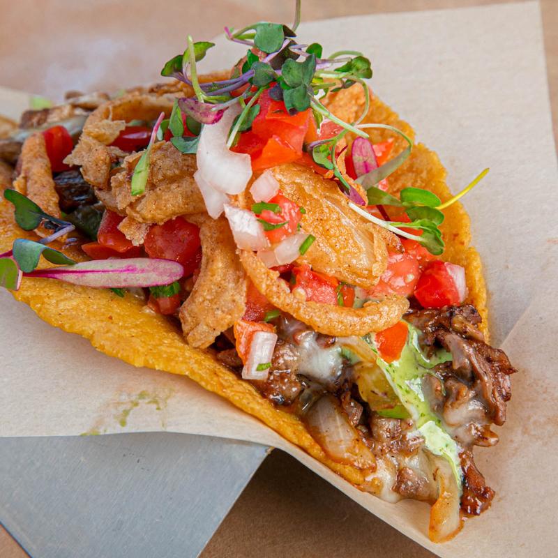 Melted Oaxacan cheese, crispy shrimp, slaw, pico, microgreens, avocado crema, and chipotle sauce.