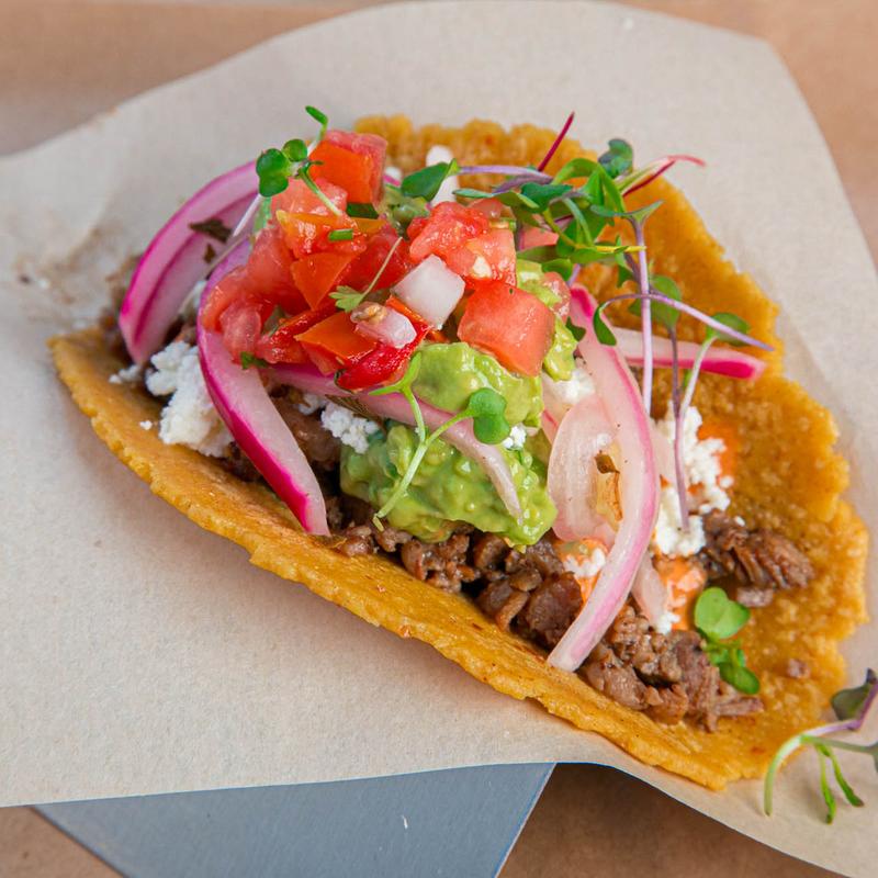Melted Oaxacan cheese, beans, pico, pickled onions, microgreens, guacamole, queso fresco, and madre crema.