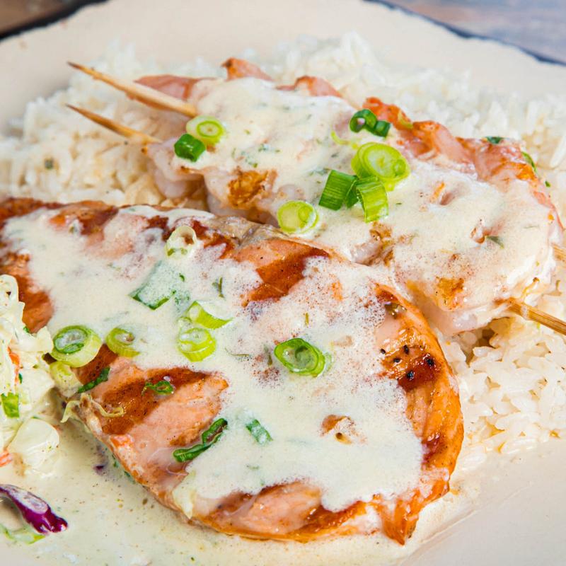 Choose 1 portion of Salmon or White Fish and 1 shrimp skewer. Chipotle, Lemon Butter, or Blackened.