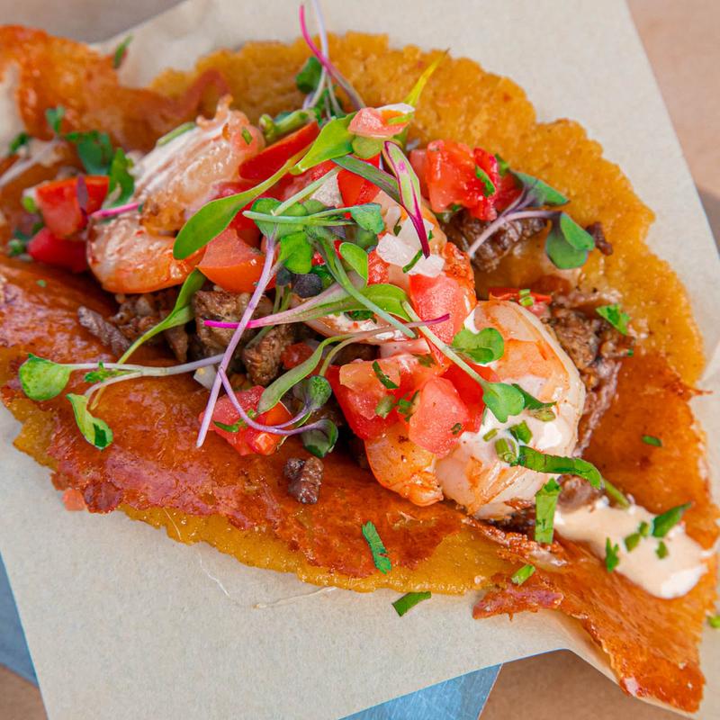Melted Oaxacan cheese, grilled steak and shrimp, pico, microgreens, and chipotle sauce.